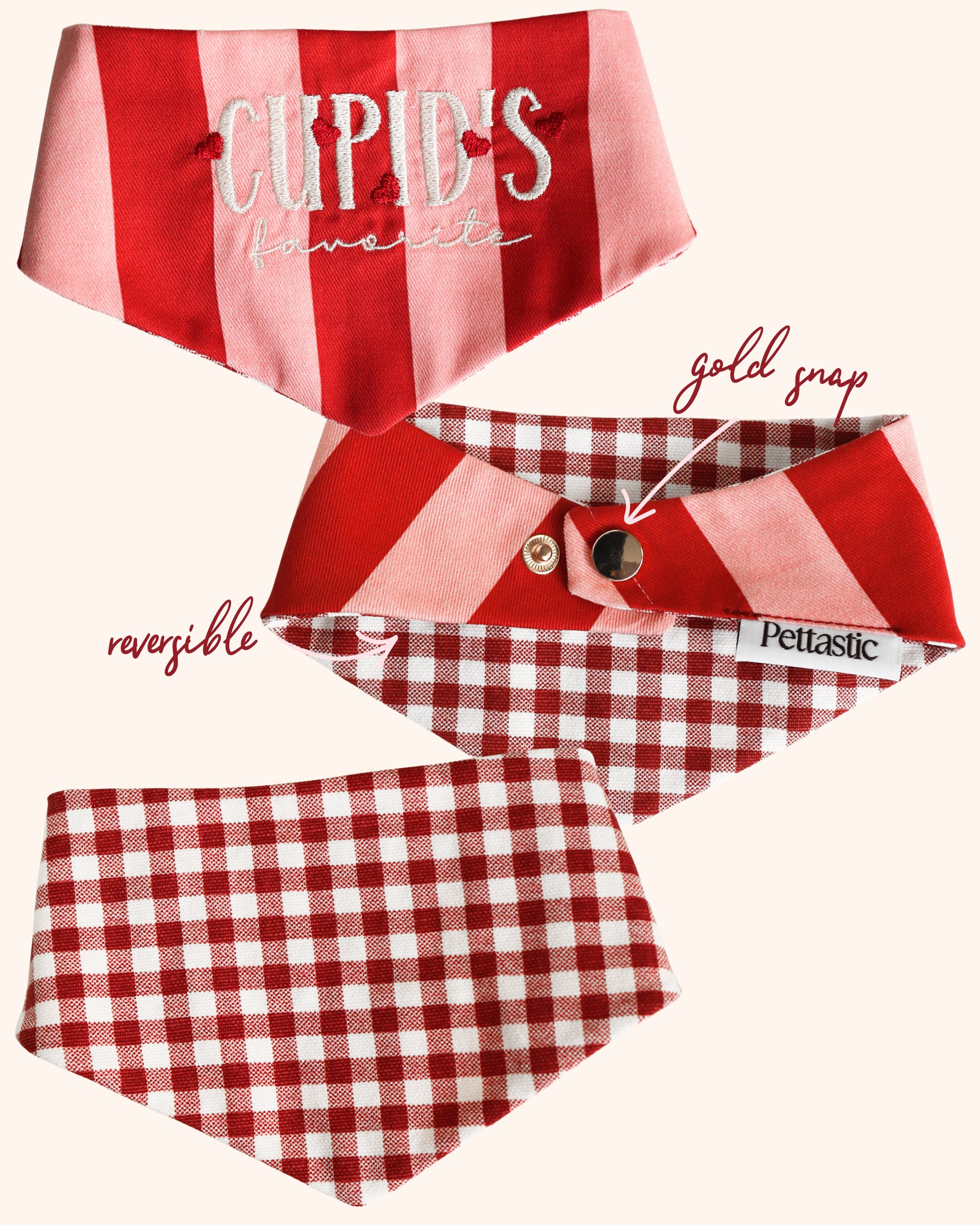 Meet Cupid’s Favorite (reversible) —the bandana made for pets who were clearly born to be adored.